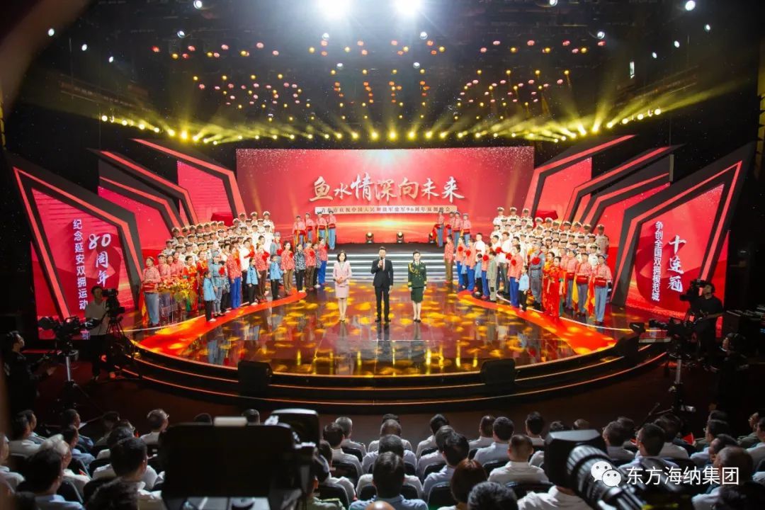 7月31日晚,青島市慶祝中國人民解放軍建軍96周年雙擁晚會在青島市廣播電視臺800平方米演播大廳舉行,紀念延安雙擁運動80周年,營造“軍民魚水一家親”的濃厚氛圍。