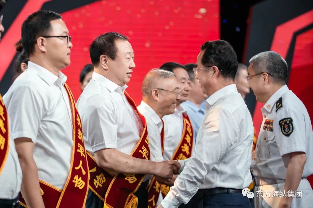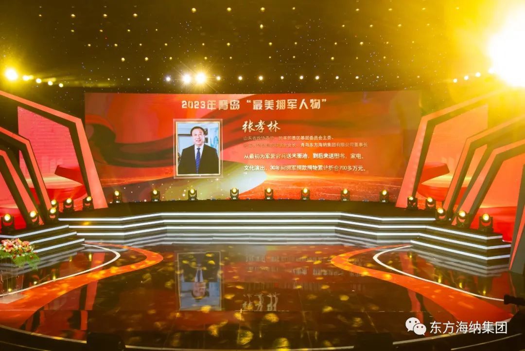 市委書記陸治原,北部戰區海軍少將副政治委員杜崗共同為董事長在內的10位”2023年青島最美擁軍人物“頒獎,并親切合影留念。活動還特別設立了“禮贊功臣父母”環節,邀請全市榮立二等功以上的現役軍人父母和立功受獎現役軍人代表來到現場,向他們表示崇高敬意。